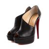The Louboutin house is know for their feminine yet sultry look. These Christian Louboutin Verita Asymmetrical Booties are for the strong and confident woman. The smooth black leather is seductive as it curves around the ankle on a perfectly proportioned platform. We love them