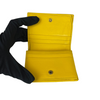 It carries an 8/10 condition rating. Bag's leather is in gold condition. Some slight wear from storage and use. There's some wear at the fold of the wallet and the corner edges. The interior is in great condition and clean. The hardware may have lost some of its sheen.
