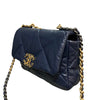 This Chanel 19 Flap Bag has just the right space to add all your needed stuff. Adorned with a beautiful quilted stitched pattern, this bag also comes with gold, silver, and ruthenium hardware. It features classic diamond quilting, a chain CC logo turn-lock, a full-length back pocket with magnetic closure for extra storage, a chain top handle, a shoulder, and a crossbody strap with leather padding. It also has an interior rear zipper pocket.