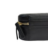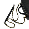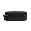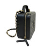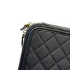 This is an authentic Chanel CC Filigree Vanity Case Caviar Quilted in Black. This chic stylish travel bag is made of caviar leather. This sophisticated shoulder bag showcases a stylish gold chain-linked black leather shoulder strap, a black handle, and a prominent Chanel CC logo with gold accents on the front. It offers a spacious interior divided by a central zipper compartment accessible through two zippers that open all around.