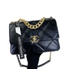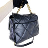 This Chanel 19 Large Lambskin features a flap enclosure to maximize space and increase security for your items. Adorned with diamond-quilted leather, this bag also comes with gold, silver, and ruthenium hardware. This is a beautiful addition to your collection.