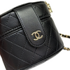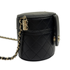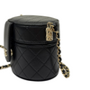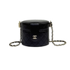 Round Vanity Case With Chain Lambskin Black GHW