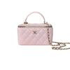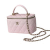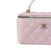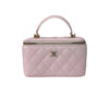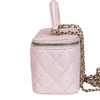 Top Handle Vanity Case With Chain Small Lambskin Light Pink GHW