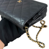 This is an authentic Chanel Wallet On Chain WOC Caviar Quilted in Black. This stylish bag is made of caviar diamond quilted leather. The bag features a below-the-waist gold chain link leather threaded shoulder strap and a small gold Chanel CC logo on the facing flap. This flap has a snap button and opens to a fabric interior with card slots and a zipper pocket.