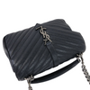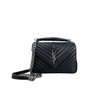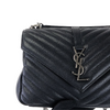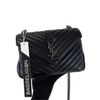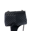 This versatile shoulder bag features the iconic YSL logo on the front and has been marvelously designed with chevron quilted leather. The bag features a long chain strap, a short satchel handle, and a slip pocket. The interior is perfect for holding all your essentials.