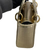 This is an authentic Christian Dior Chain Lady Dior Mini Metallic Patent Micro-Cannage in Gold. This stylish tote is crafted of the hallmark micro-cannage quilted calfskin leather in gold. The tote features leather top handles with polished gold links, a gold Dior charm and an optional leather shoulder strap. The top zipper opens to a leather interior with a zipper pocket.