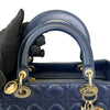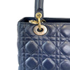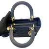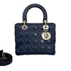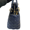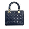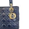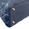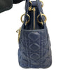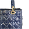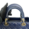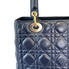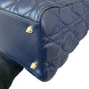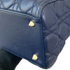 This is an authentic Christian Dior Lady Dior Medium Lambskin Navy Blue. Featuring quilted lambskin leather in blue, gold hardware, rolled reinforced leather handles provide sturdy carrying, while the strap adds versatility and comfort. This classic bag can be used throughout the day but is perfect for your evening socials.