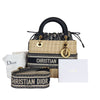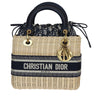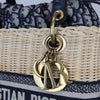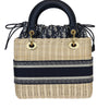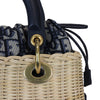 This is an authentic Christian Dior Lady Dior Medium Wicker Oblique in Blue. This bucket-style bag is crafted of Dior monogram canvas and blue leather trim. The bag features a gold chain strap and leather cinch cord closure. The interior opens to a natural fabric.