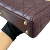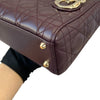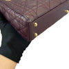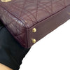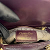 This is an authentic Christian Dior Mini Lady Dior Lambskin Cannage in Plum. This super chic tote is crafted of geometric quilted lambskin leather. The bag has strong leather top handles, a gold chain with a matching leather pad, and gold hardware with hanging Dior logo charms. The top opens to a grey Dior monogram jacquard fabric interior with a zipper pocket.