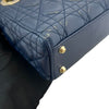 This is an authentic Christian Dior Mini Lady Dior Top Flap Lambskin Cannage in Navy. Crafted from lambskin leather, this petite tote showcases a chic geometric-quilted pattern. It features coordinating black leather top handles and elegant gold hardware, including a dangling Dior charm and an crossbody strap.