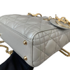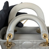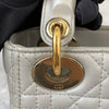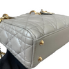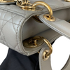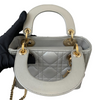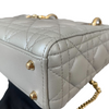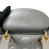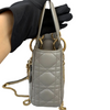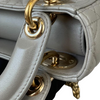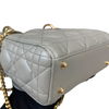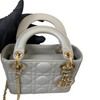 A fine mix between timeless and modern, the Mini Lady Dior Bag is a star in the making. This pearly grey bag has been crafted from leather and it carries the signature Cannage quilt. It features a fabric interior, two top handles and a detachable shoulder strap. The gorgeous piece is complete with the classic Dior letter charm.