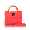 The Diorever features a leather body, rolled handles, a detachable flat strap, and a top flap with a push lock closure.