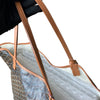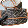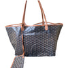 This Goyard Saint Louis Tote Bag features a Chevroches Calfskin & Goyardine Canvas body, flat leather handles, and a detachable canvas pouch. This highly sought-after bag is the perfect combination of luxury and casual sophistication. Goyard bags are known for their exclusivity and popularity among celebrities. What makes the Anjou bag special is its reversible feature. You can choose between the canvas and grained leather.