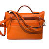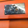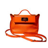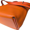 This is an authentic Hermes 24/24 21 Swift in Orange. This handbag is crafted of richly textured swift leather. The bag features a reinforced leather top handle, an optional leather shoulder strap, and silver palladium hardware. The flap opens to a matching smooth leather interior with a zipper pocket.