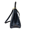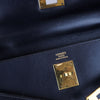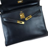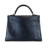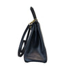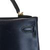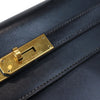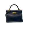 This is an authentic Hermes Kelly 32 Vintage Box in Dark Blue. This stunning vintage tote is finely crafted of box calf leather in dark blue. The bag features a classic top handle, an optional shoulder strap, a frontal flap, a strap closure, and gold hardware. The flap opens to a leather interior with a flat pocket. Elevate your ensemble with this iconic piece.
