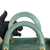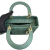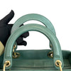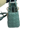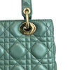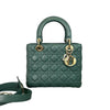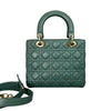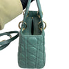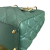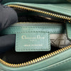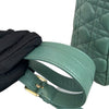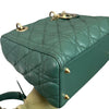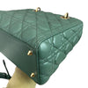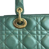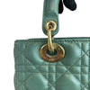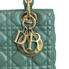 A sleek, feminine style from the iconic brand, this Lady Dior features the hallmark soft geometric quilted lambskin leather in green. The gold toned signature D.I.O.R. metal jewelry charms embellish it with feminine elegance, while the sturdy top handles with a long detachable chain make it versatile.