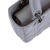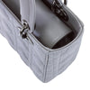 The ABC Lady Dior is a feminine, stylish tote crafted of the hallmark cannage quilted lambskin leather in grey. The rolled reinforced leather handles provide sturdy carrying, while the embellished strap adds versatility and comfort. The bag features a silver hardware and a top inner flap that opens to a classy interior in grey Dior monogram jacquard fabric with a zip pocket.