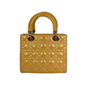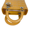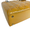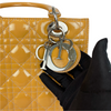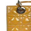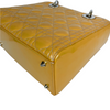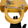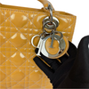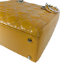 A sleek, feminine style from the line of Dior's iconic bag, the Medium LADY DIOR features the hallmark soft geometric quilted patent leather topstitched with the iconic Cannage in red. The silver signature D.I.O.R. metal jewelry charms embellish it with feminine elegance and the sturdy top handles with a long detachable chain make it versatile.
