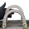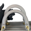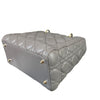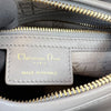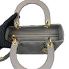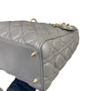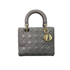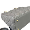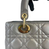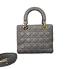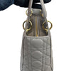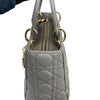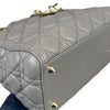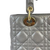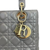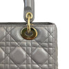 A sleek, feminine style from the iconic brand, the Dior Lady Dior Medium features the hallmark soft geometric quilted leather topstitched with the iconic Cannage in grey. The silver signature D.I.O.R. metal jewelry charms embellish it with feminine elegance, and the sturdy top handles with a long detachable chain make it versatile.