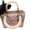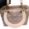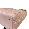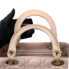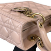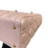 This Lady Dior in size medium comes in light pink lambskin leather featuring Gold hardware. This classic bag can be used throughout the day but is perfect for your evening socials.