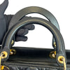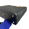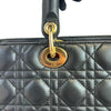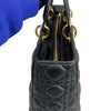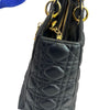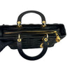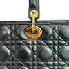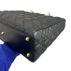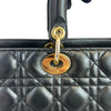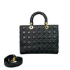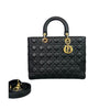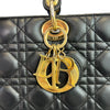 A sleek, feminine style from an iconic brand, the Dior Lady Dior Large features the hallmark soft geometric quilted patent leather top stitched with the iconic Cannage in black. The gold signature D.I.O.R. metal jewelry charms embellish it with feminine elegance, while the sturdy top handles with a long detachable chain make it versatile.