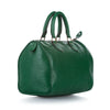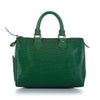 The Louis Vuitton?ÿSpeedy 25 features an epi leather body, an exterior side slip pocket, rolled handles, a top zip closure, and an interior slip pocket.