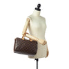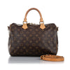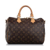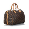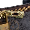 The Speedy Bandouliere 30 features a monogram canvas body, rolled vachetta leather handles, a detachable flat strap, and 2 way top zip closure.