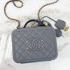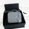Chanel redesigned their Vanity Cases which makes a great addition to their fashionable handbags. This may be called a vanity or cosmetic case but it boasts generous storage not just for your make-up but also for your daily essentials. This bag is crafted in Chanel’s signature caviar leather and accentuated with light gold toned hardware and a prominent Chanel CC logo. You can truly appreciate this beautiful bag in a rare grey colour.