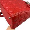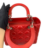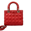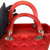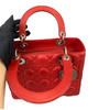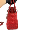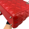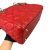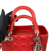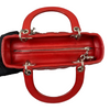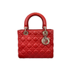 The Lady Dior bag comes in a beautiful red color. It features silver tone hardware and a top inner flap that opens to a classy interior in rEd Dior monogram jacquard fabric with a interior zip pocket. This classic bag can be used throughout the day but is perfect for your evening socials.