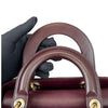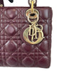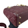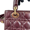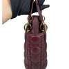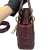 The Lucky Badges My Lady Dior Small is a feminine, stylish tote crafted of the hallmark cannage quilted lambskin leather in burgundy. The rolled reinforced leather handles provide sturdy carrying, while the embellished strap adds versatility and comfort. The bag features gold hardware and a top inner flap that opens to a classy interior in Dior monogram jacquard fabric with a zip pocket. The Charms can be interchanged with newly chosen charms sold separately at the Dior boutique.
