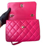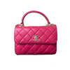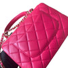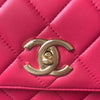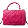 This Chanel Small Trendy CC Flap with diamond Quilting is a stunning piece. It features a lambskin leather exterior, a leather top handle, and a gold toned chain and leather strap. This beauty can be worn as a top handle, or a shoulder bag.