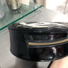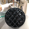 Vanity Case Vintage Round Top Handle Quilted Black Patent Leather Clutch