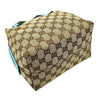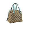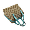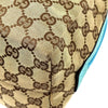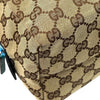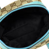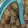 The early 2000s are calling. Remember these little pouch purses? They're back in style! This Gucci purse features their timeless GG Supreme Monogram in a beige and light brown-toned canvas with blue trimmed leather handles. Though it may look tiny in size it is sure to fit all of your essentials!