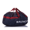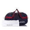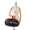 The Balenciaga Wheel Everyday features a nylon body, flat canvas handles, a top drawstring closure, and interior zip and slip pockets.
