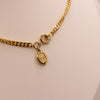 This Celine Logo Necklace in Gold toned hardware features gold-tone chain and pendant, and a lobster claw closure.