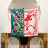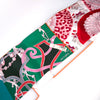 This scarf is a cheerful way to show off your inner personality. Adorned with pink and green, this number will cheer up an otherwise neutral ensemble. Wear it around your neck, on the handles of your favourite purse, or folded in half as a top or as a cover for your bikini bottom. The possibilities are endless.