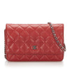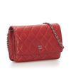 Style: CC Timeless Lambskin Leather Wallet On Chain Red