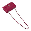 This stunning Small Chanel Classic Rectangle Flap in Dark Pink Chevron Lambskin leather with silver hardware is a must-have for any Chanel collector. It features a woven chain strap, which can be worn crossbody or doubled up to wear as a shoulder bag, and Chanel’s signature smile pocket on the back. This is the perfect bag to add a touch of fierce femininity to your outfits.