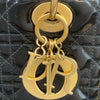 A sleek, feminine style from an iconic brand, the Dior Lady Dior Medium features the hallmark soft geometric quilted patent leather topstitched with the iconic Cannage in black. The gold signature D.I.O.R. metal jewelry charms embellish it with feminine elegance, while the sturdy top handles with a long detachable chain make it versatile.