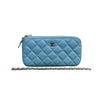 Wallet on Chain WOC Small Lambskin Quilted Light Blue GHW