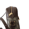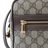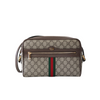 The Ophidia Crossbody Bag features a Ccanvas body, flat leather strap, exterior zip pocket, top zip closure with leather trim, and interior zip pocket.