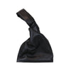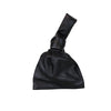 The Bottega Vanetta Mini Twist Knot clutch features a black leather body, a top handle, a zip closure, and a spacious interior zip pocket.