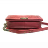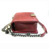This Chanel Boy bag features beautiful calfskin leather accentuated with a stitched design. A rare find with its ruthenium hardware with an accent of aged gold hardware on the clasp and two corner rings.