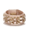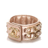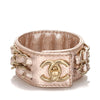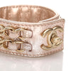 This Chanel cuff features a lambskin leather body, a gold-tone chain detail, and a CC turnlock closure.
