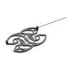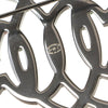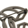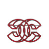 This Chanel brooch features a metal hardware and rhinestone studs.