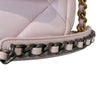 The Chanel 19 is is a beautiful mix of structured and soft with its Goatskin exterior in 22p light pink. It's reminiscent of a classic flap, but up to date with its bold CC logo. The chunky multi-toned chain strap adds a playful charm to the bag. You don't want to pass this steal up!