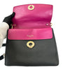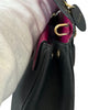 This is an authentic Christian Dior Be Dior Flap Small Bullcalf in Black. This chic small tote is made from luxurious black pebbled bull-calf leather. It boasts a sturdy leather top handle adorned with gold tone links, an optional crossbody strap, and a dangling Dior logo charm. The flap reveals a vibrant berry pink leather interior with convenient patch pockets.
