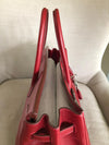 The bag is in good condition. The leather exterior is clean and has no scratches. The structure is still stiff. Tiny hairline scratches can be found on the hardware including the feet. Overall this bag is in 9/10 condition.