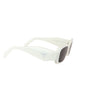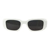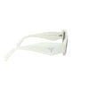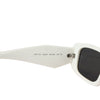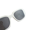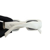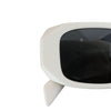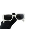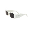 This is an authentic pair of Prada Acetate Symbole Sunglasses SPR 17W in White. These stylish frames are white with square rims and black lenses. The thin arms of the frame have the Prada logo at the temple.