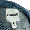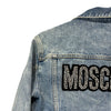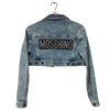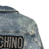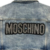 This is an authentic Moschino H&M Short Sparkly Rhinestones Jacket Denim Blue in Small Size. This jacket features a short, fitted silhouette adorned with sparkling rhinestones. Crafted in a striking denim blue, it offers a trendy, bold look for a size small.